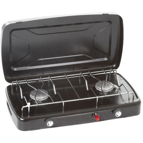 Fornello a gas a 2 fuochi con bruciatori regolabili.